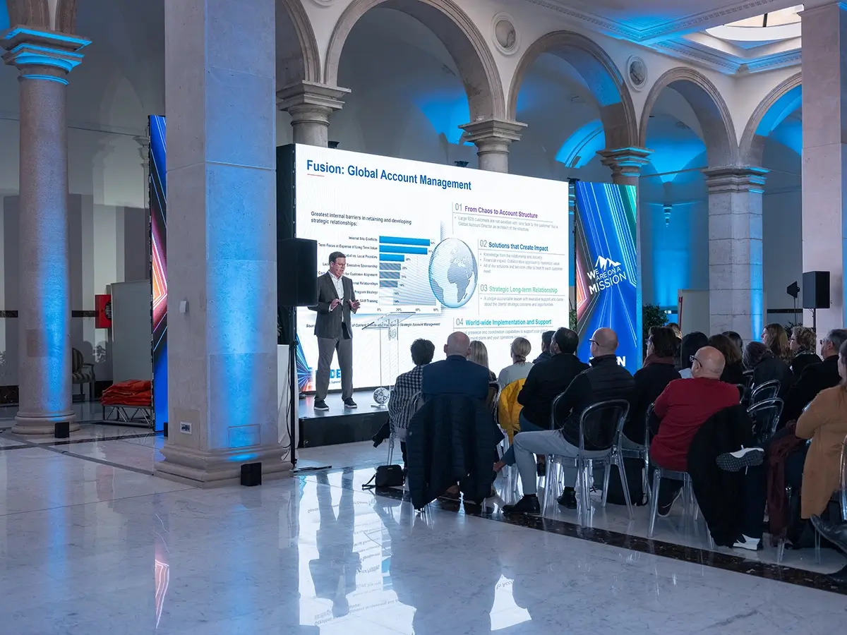 In oktober 2023 vroeg een multinational in de glasvezelindustrie ons om een driedaagse EMEA-conferentie te organiseren in Rome. De eisen omvatten moderne vergaderruimtes, breakout-zalen in een centraal gelegen en unieke locatie, interactieve activiteiten voor een onconventionele ontdekking van de stad, en een weelderig galadiner met prijsuitreiking. De grootste uitdaging was dat alle ervaringen te voet bereikbaar moesten zijn — een doel dat we volledig hebben bereikt, tot grote tevredenheid van de klant.